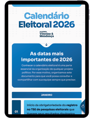 Por isso, conhecer o calendário eleitoral é fundamental para quem pretende se candidatar ou trabalhar em uma campanha eleitoral. Pensando nisso, a maior escola de marketing político do País, a Academia Vitorino e Mendonça, desenvolveu um documento com as datas mais importantes do calendário eleitoral estabelecido pelo Tribunal Superior Eleitoral (TSE).
